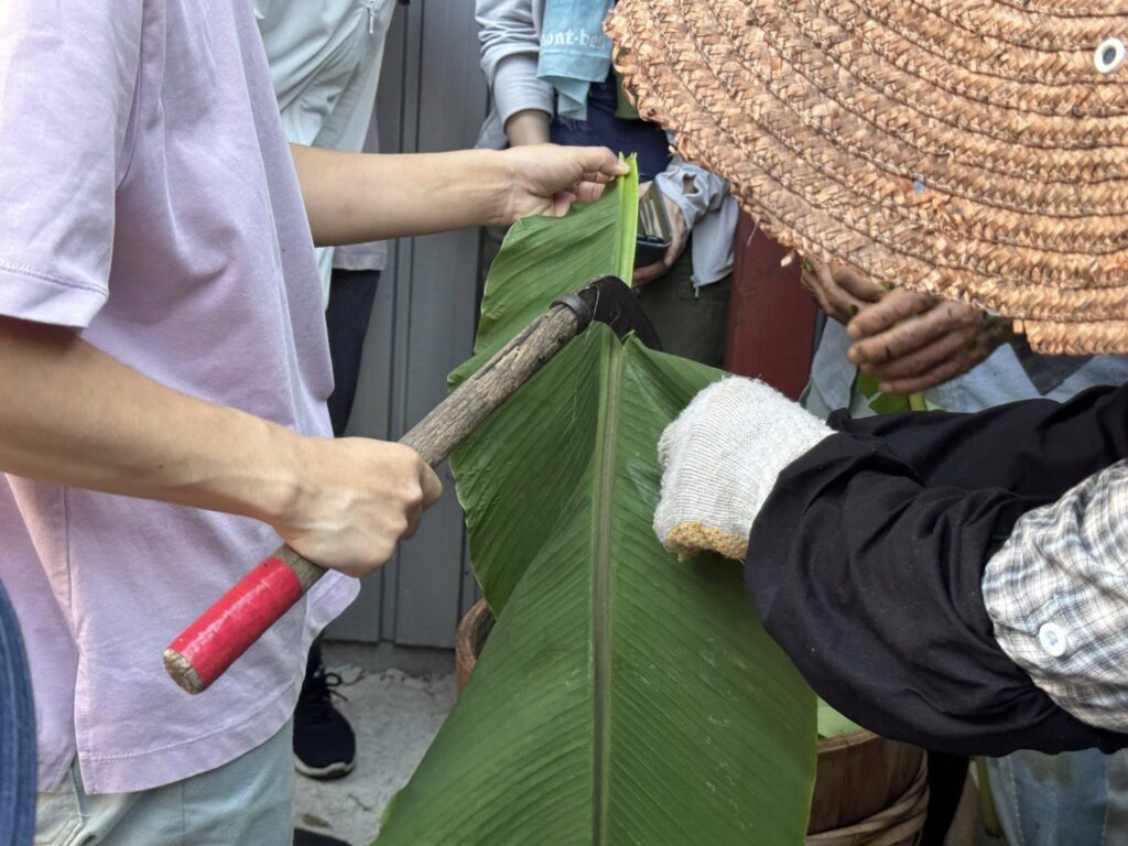 ツアー客が阿波晩茶の樽オーナーになって晩茶作りしていた阿波晩茶協会にちょこっと立ち寄ってみる。茹でて、擦った後、樽付けする様子を一瞬だけ拝見させていただきました^_^ 2025.07.19facebook記事より -