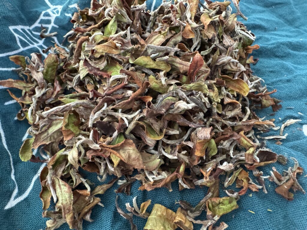 摘採葉 カレイ3枚分自然室内伝統萎凋 19時間半揉捻 手揉み1時間発酵 2時間釜炒り殺青 温度160-180度 4分釜乾燥 100〜120℃の間で調整しながら 40分仕上げ棚乾燥 70℃ 40分 2025.10.01facebook記事より -