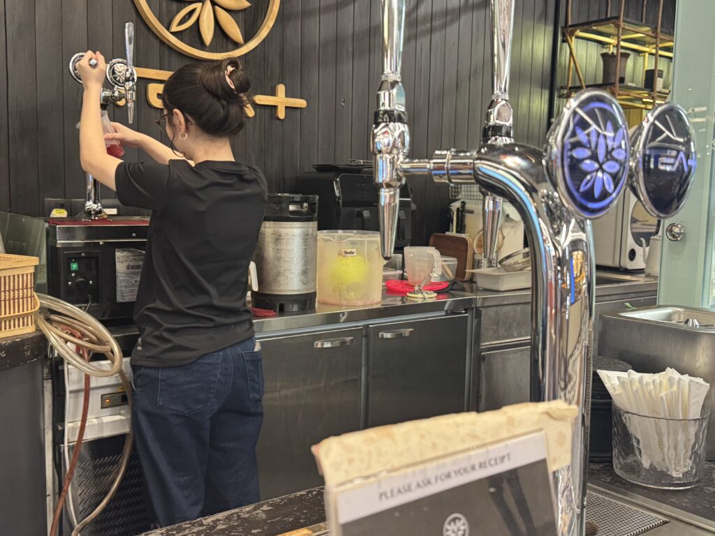 工場見学入り口手前のジェラートスタンドは、看板見て決めて行列に並んだのに、いざケースを見るとティーラテもバニラティーもありません。食べないという選択はないので、ライチ&ローズのソルベとミルクティージェラート。BOHのティーテラスにて、Palas ... -