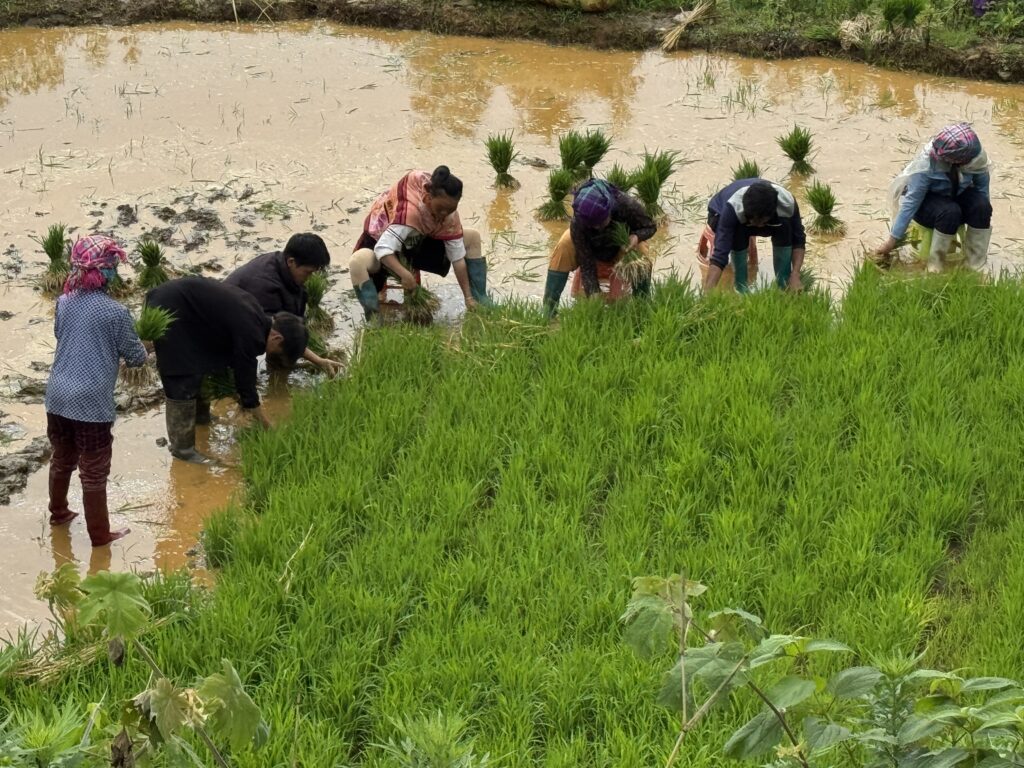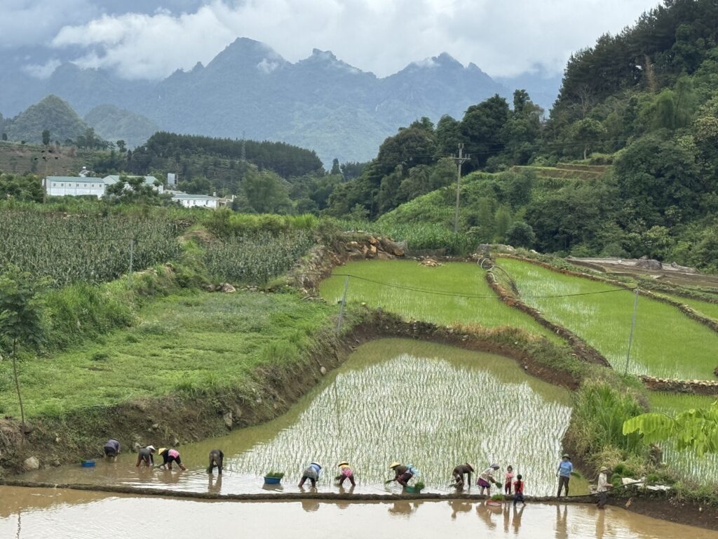 赤モン族が営むカフェ兼レストランでグリーンティーで一服した後に盛んに田植えが行われている畦道を散策。適度な運動した後のランチはもりもり食べられます。笑顔が可愛い看板娘がお給仕してくれました。 2025.05.18facebook記事より -