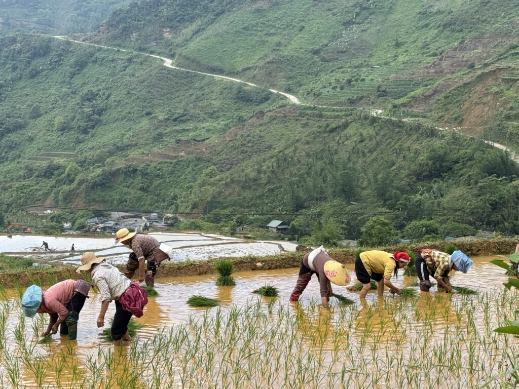 大きな赤モン族の村霧雨の田植え@ベトナムの民族文化と生活に触れる旅
