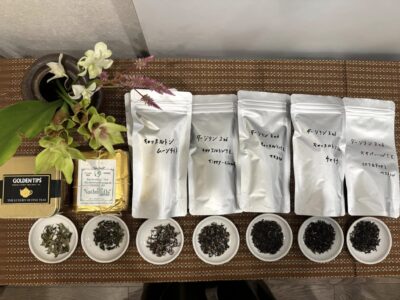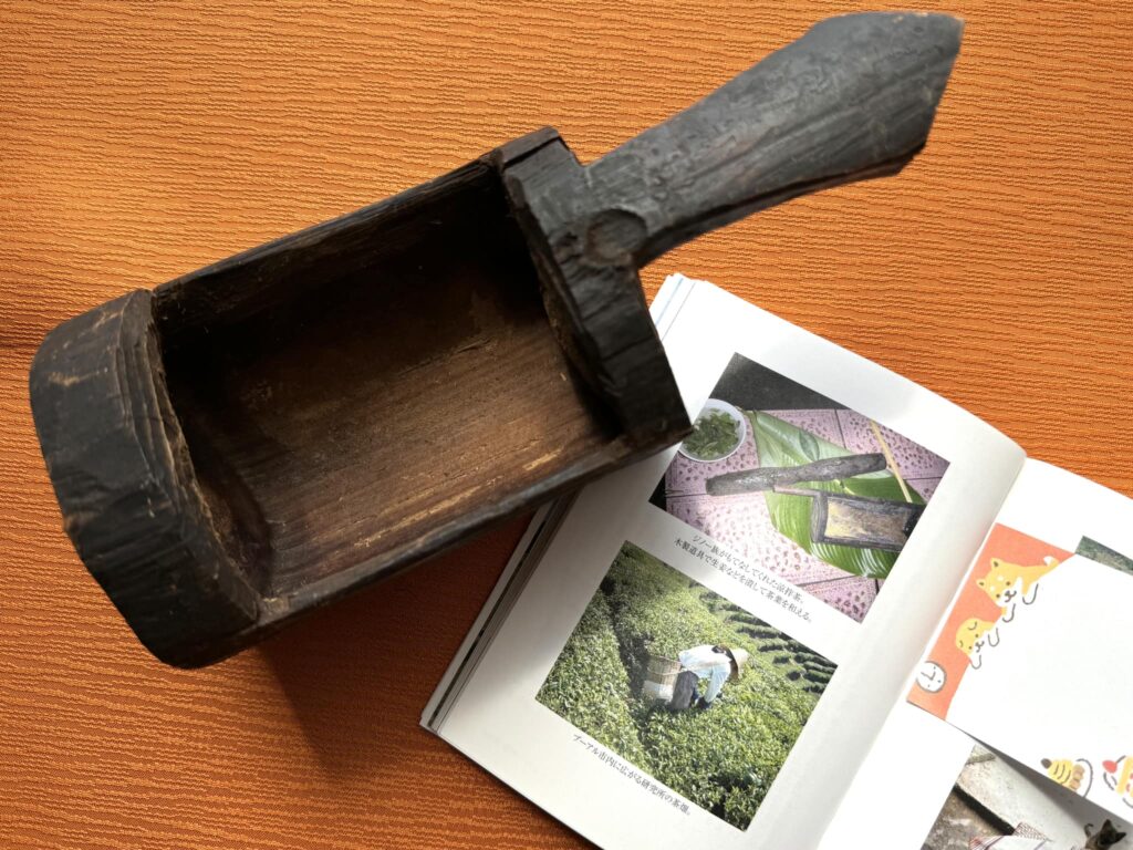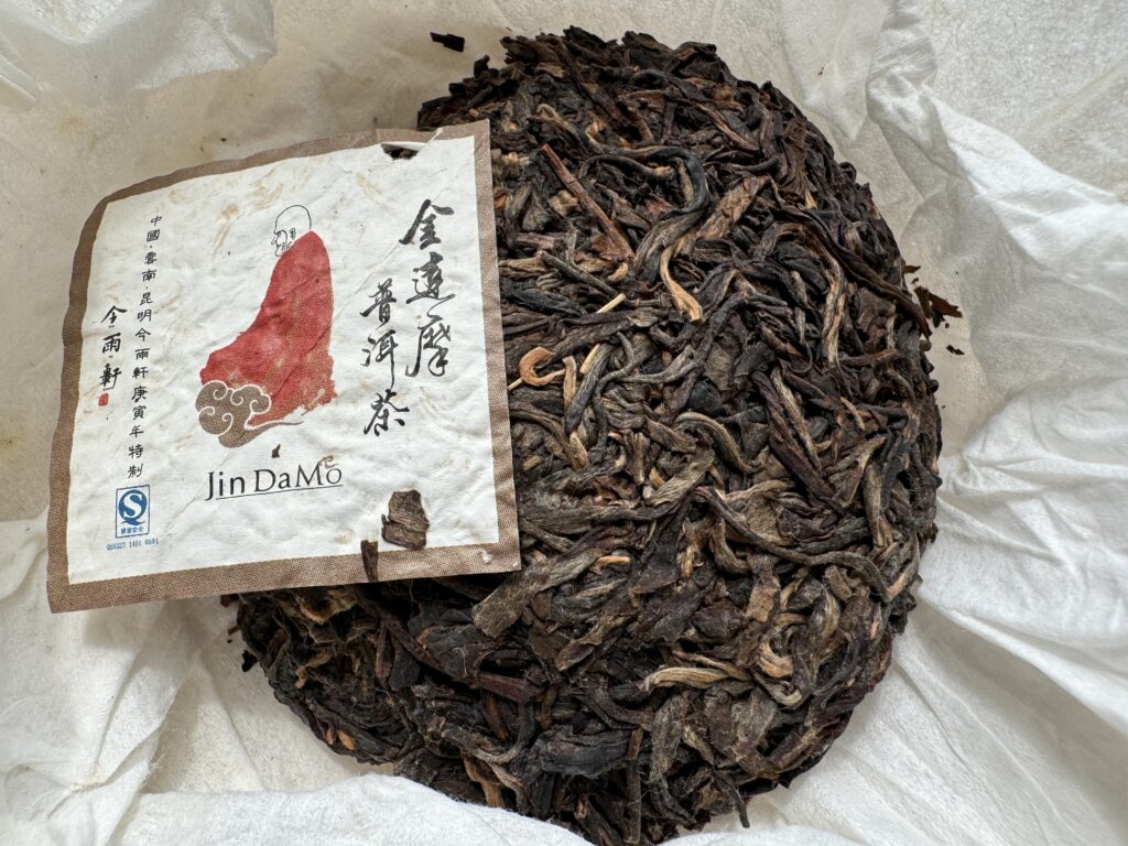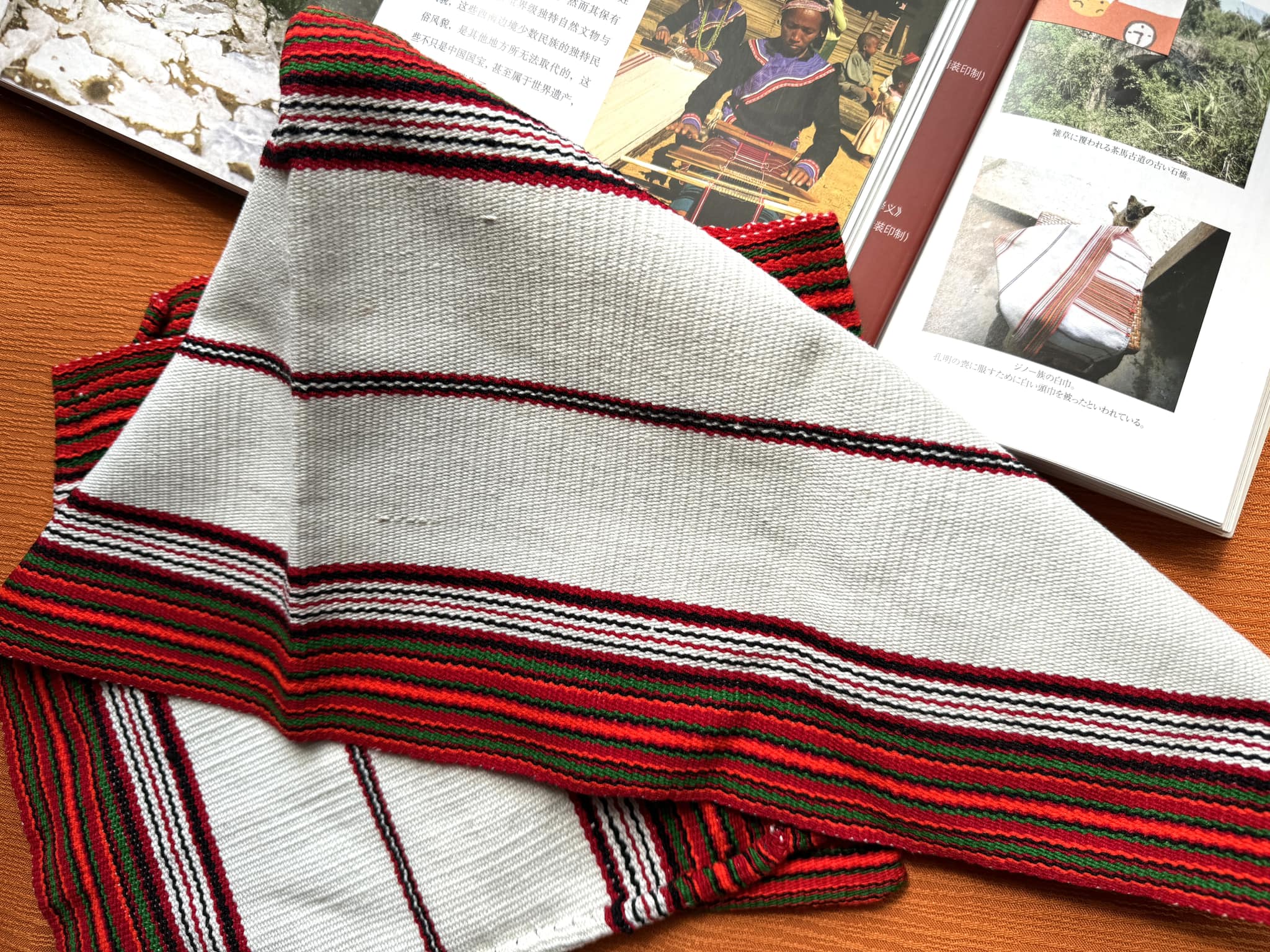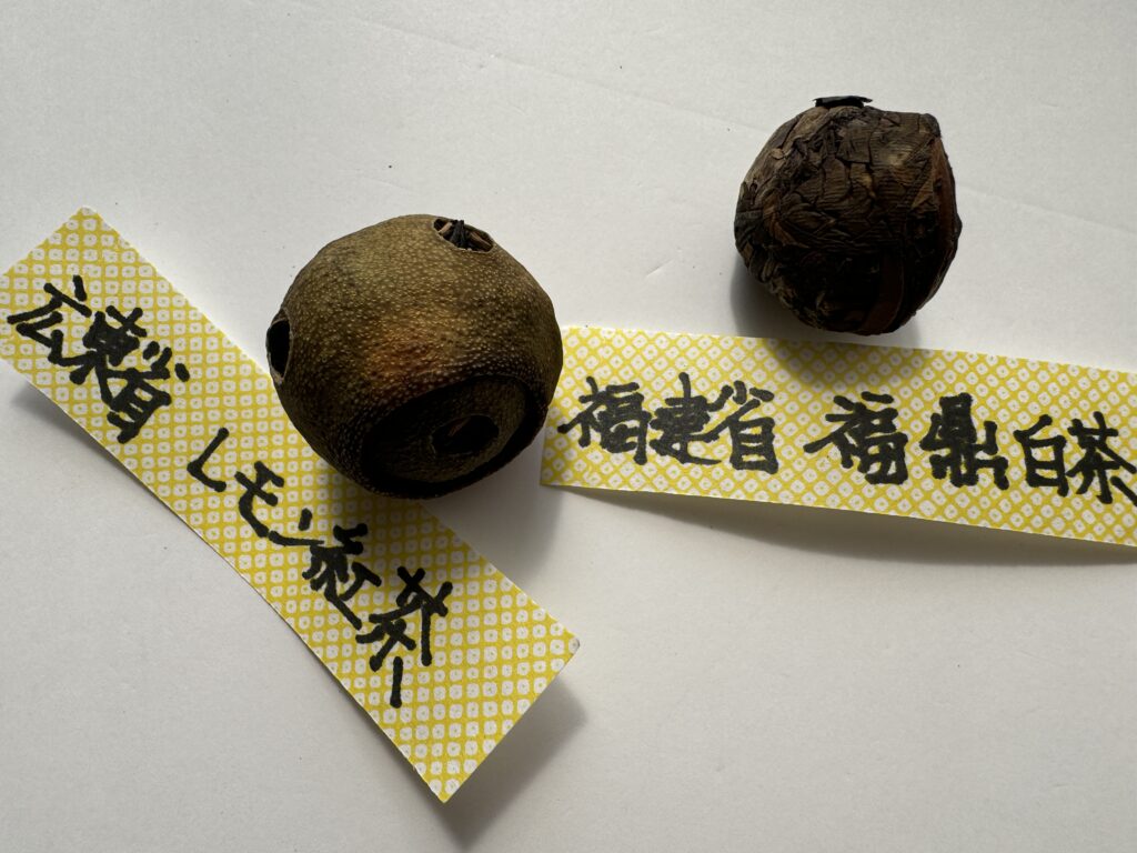雲南省シーサンパンナの基諾山に住むジノー族には、三国時代孔明と共に進軍して、山に残った兵士の末裔だという伝説があります。少数民族ジノー族の80%以上が熱帯雨林の基諾山一帯に暮らしていました。かつて二階建て木造家屋の一階には機織り機が置かれて、女性は機を織っていました。ジノー族の女性が被っていた白い頭巾は、孔明の喪に服していることの現れと言われていました。ジノー族が三国志の時代から残す喫茶法に凉拌茶、烤茶があります。凉拌茶は摘んで来た新鮮な茶葉を竹製の器に入れて木棒でつぶし、大きな碗に移して、油・塩・にんにく・唐辛子を加え、そこにお湯を注ぎ混ぜます。烤茶は、摘んで来た新鮮な茶葉をバナナの葉に包んで焚火にくべて、バナナの葉表面が焦げてきたら取り出して竹筒の中に入れてお湯を注ぎます。18年前に基諾山で凉拌茶、烤茶をご馳走してくれたご夫婦からいただいた白頭巾と竹製の器は、懐かしい思い出となってしまいました。そのすぐ2年後に訪れた時には山奥の小さな木造家屋が、まさかの、鉄筋コンクリートビルになってしまっていたのです。思い出の品、明日の雲南茶講座のテーマ「少数民族」にからめて久しぶりに引っ張り出しました。経年でそろそろお役目を終えそうな質感です。竹にはヒビが入ったし、白頭巾も真っ白じゃなくなってしまいました。最期のお披露目になりそう…