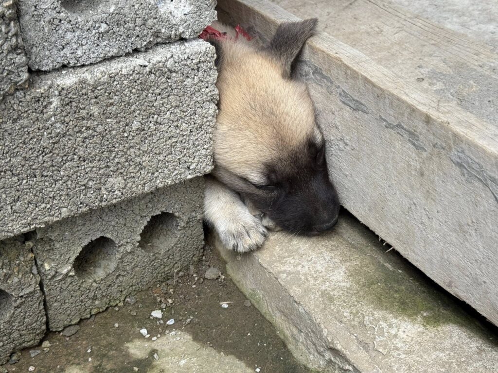ルー族のお宅の庭には、たいがい番犬として犬がいます。こちらでは、飼い主が何度も引き出してもいつの間にか隙間にはまる子犬たちがいました。