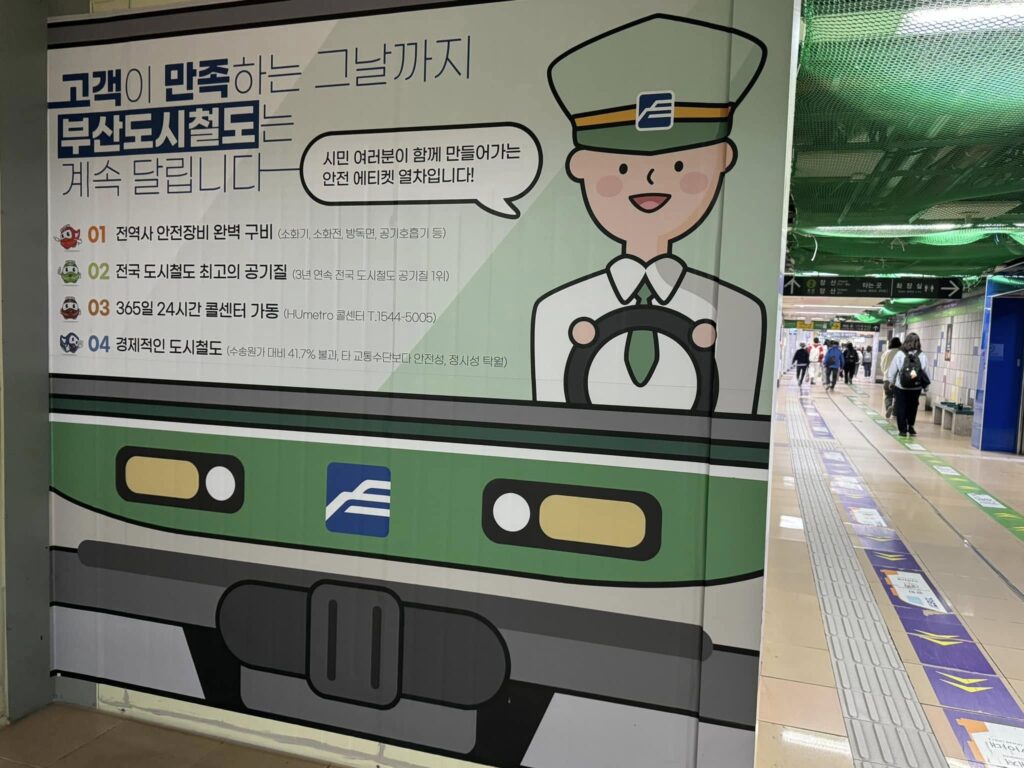 釜山-金海軽電鉄の空港駅から、地下鉄2号線、1号線と乗り継いで釜山駅到着。釜山駅の売店で、慶州パン(경주빵)と胡桃菓子(호두과자)の2択で迷って胡桃菓子を選択したけど、胡桃菓子はやはりサービスエリアで熱々を買ったほうが良いです。慶州名物慶州パンは手作り本物は釜山では買えないようです。