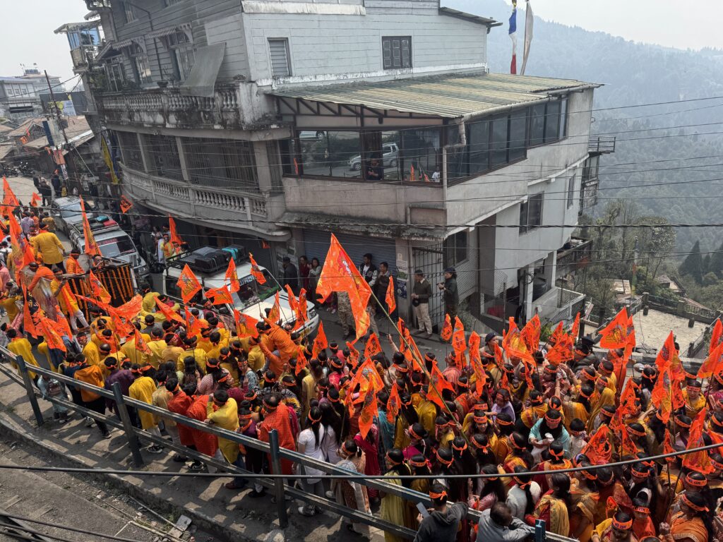 ダージリン駅からトイトレインに乗ってグーム駅で下車して、ヒンドゥの神様ラーマの誕生日を祝うオレンジ色の渦をかいくぐり、静けさ求めてチベット仏教ゲルグ派のイガ・チョリン僧院 へ。