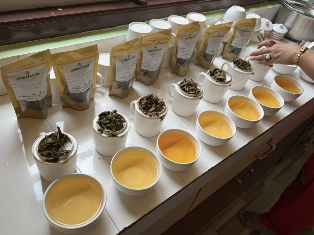 鑑定室のテイスティングはできたてファーストフラッシュを7種類。
