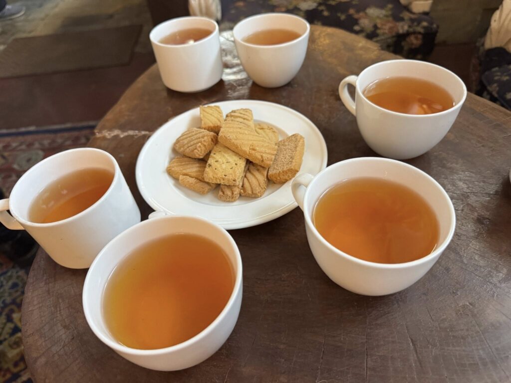 今晩から泊まる部屋には花に囲まれたバルコニーにテーブル&チェアが置かれていました。ウエルカムティーは、クミンが入ったクッキー付き。明日は早起きしてモーニングティーします。
