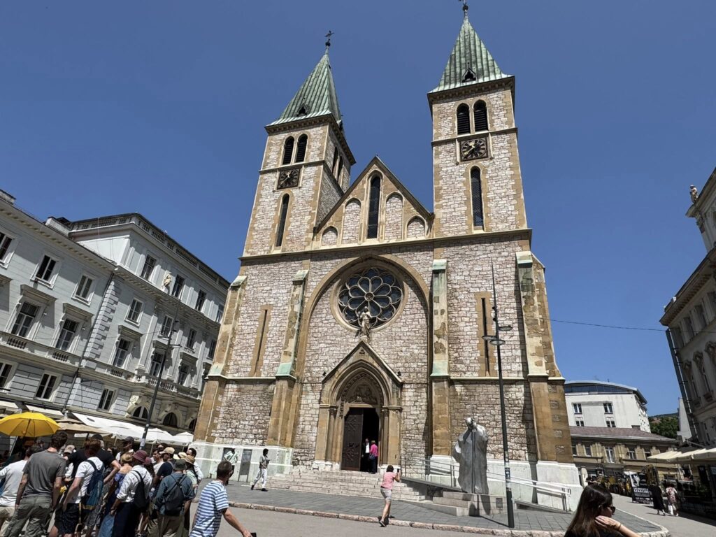 1992年に砲撃を受けて外壁を残して全焼したオーストラリア・ハンガリー帝国時代の市庁舎(後の国立図書館)を拠点に、オスマン帝国時代を彷彿とさせるエリアとキリスト教系エリアを歩く。ボスニア人の多くがイスラム教ですが、正教会、カソリック教会も許容しています。