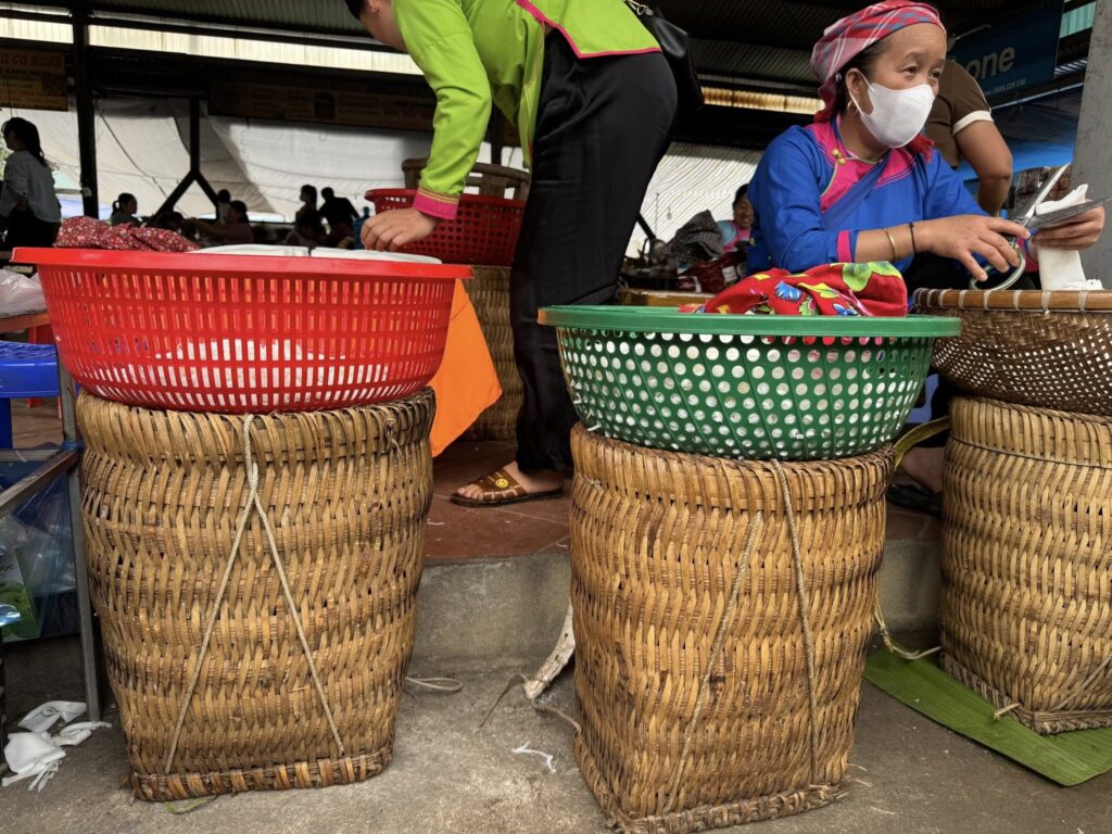 最近少数民族が背負う籠がプラスチック化していることが寂しかったのですが、こちらの市場ではまだまだ竹細工が全盛。