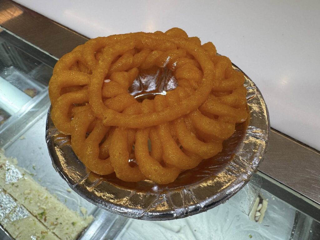 アマルティ(AMRITI)、別名イマルティはジャレビに似た菓子。ヴィニャ・ムンゴ(ブラックグラム)粉で作る生地を花のような円形に揚げてシロップに漬けた伝統菓子。