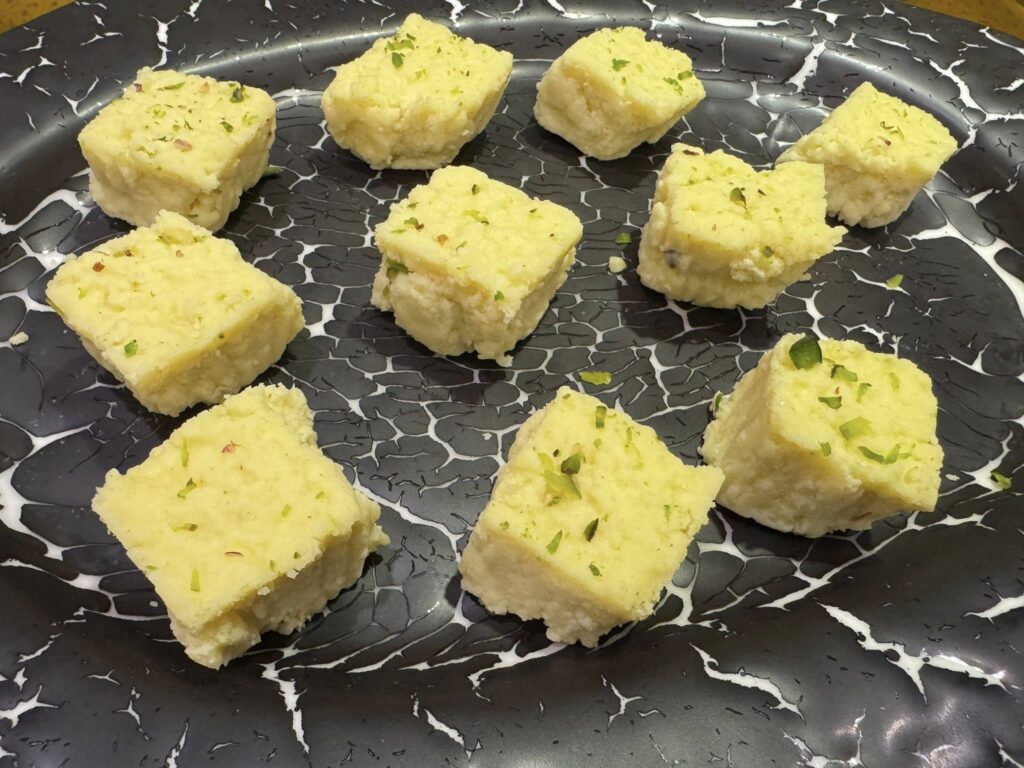カラカンド(Kalakand)は、牛乳を煮詰め固めて作るインディアンミルクケーキ。