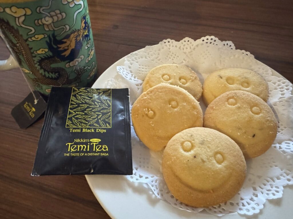 バンガローのスマイルクッキーにてモーニングティー@チベット仏教国のお茶を尋ねて 2026 1/30 ブログ インド 風景 2026年1月30日 茶園に暮らすの犬もヤギもシトシト雨に閉じ込められた朝。茶園の土手に一輪だけ咲く赤いバラも茶園の若い葉も慈雨にしっとり。空は明るくなってきました。モーニングティーはテミティー&スマイルクッキー。 2025.04.17facebook記事より ブログ インド 風景 お茶ガイド よかったらシェアしてね! URLをコピーしました! ダンニャバード、テミティーガーデンバンガロー@チベット仏教国のお茶を尋ねて シッキム、テミ茶園の歴史@チベット仏教国のお茶を尋ねて この記事を書いた人 shinowazuri 関連記事 さよならダージリン、またいつか^_^@チベット仏教国のお茶を尋ねて 2026年1月30日 ダージリンファーストフラッシュ2025出揃う@チベット仏教国のお茶を求めて 2026年1月30日 タムソン茶園ランチ@チベット仏教国のお茶を尋ねて 2026年1月30日 リンギア茶園、野辺に咲く花に@チベット仏教国のお茶を尋ねて 2026年1月30日 glenary’sのタルトでモーニングティー@チベット仏教国のお茶を求めて 2026年1月30日 ダージリンタウンで新たなインド伝統菓子を見つける@チベット仏教国のお茶を尋ねて 2026年1月30日 桜咲く、霧深きスーム茶園@チベット仏教国のお茶を尋ねて 2026年1月30日 シッキム、テミ茶園の歴史@チベット仏教国のお茶を尋ねて 2026年1月30日