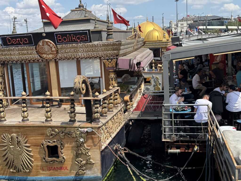 たくさんの釣り糸が垂れているガラタ橋を渡り、鯖サンド船が集結している船著場から船でターコイズブルーのボスポラス海峽をのぼってくだる。今回訪れることが叶わないドルマバフチェ宮殿も見えた^_^