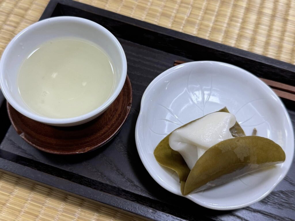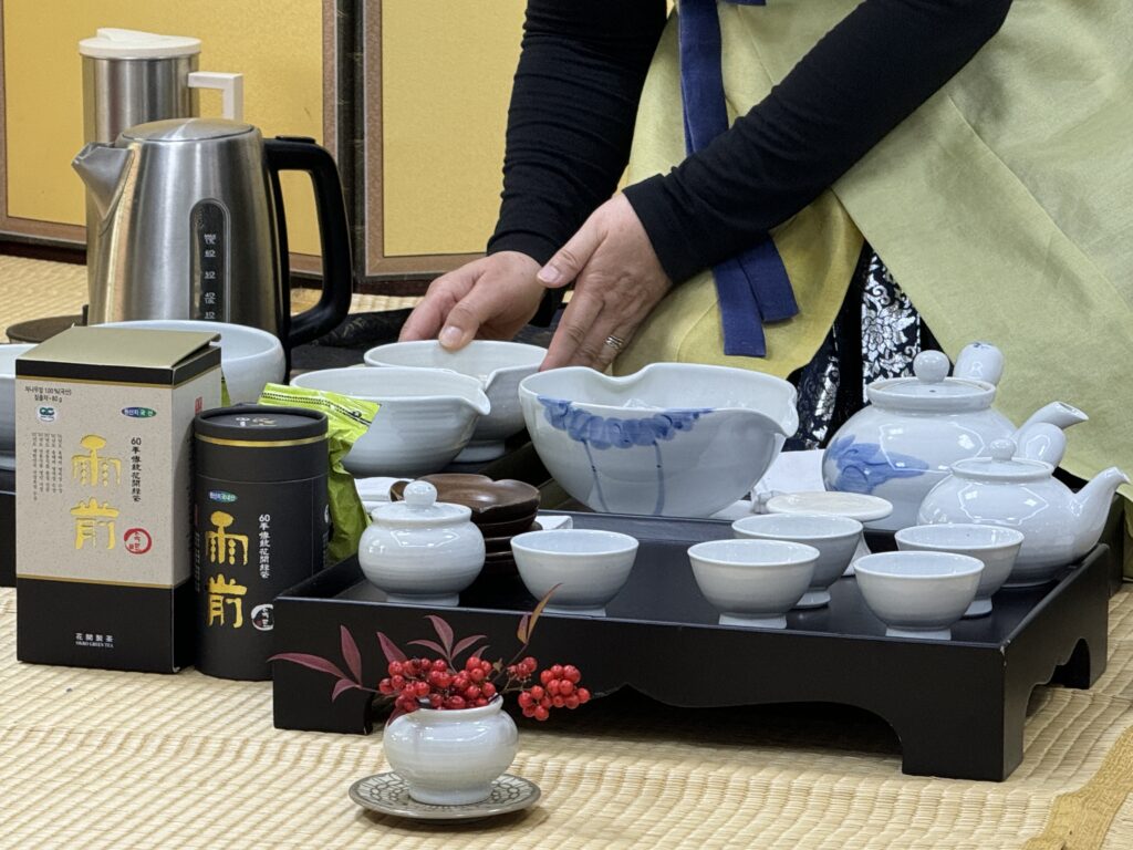 一族は現在16代目と続き、一番年長の13代目が智異山野生緑茶と宜寧名物マンゲトクでおもてなしいただきました。