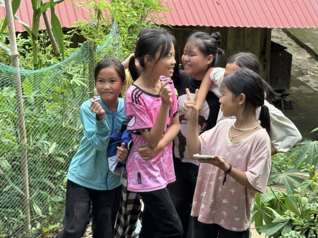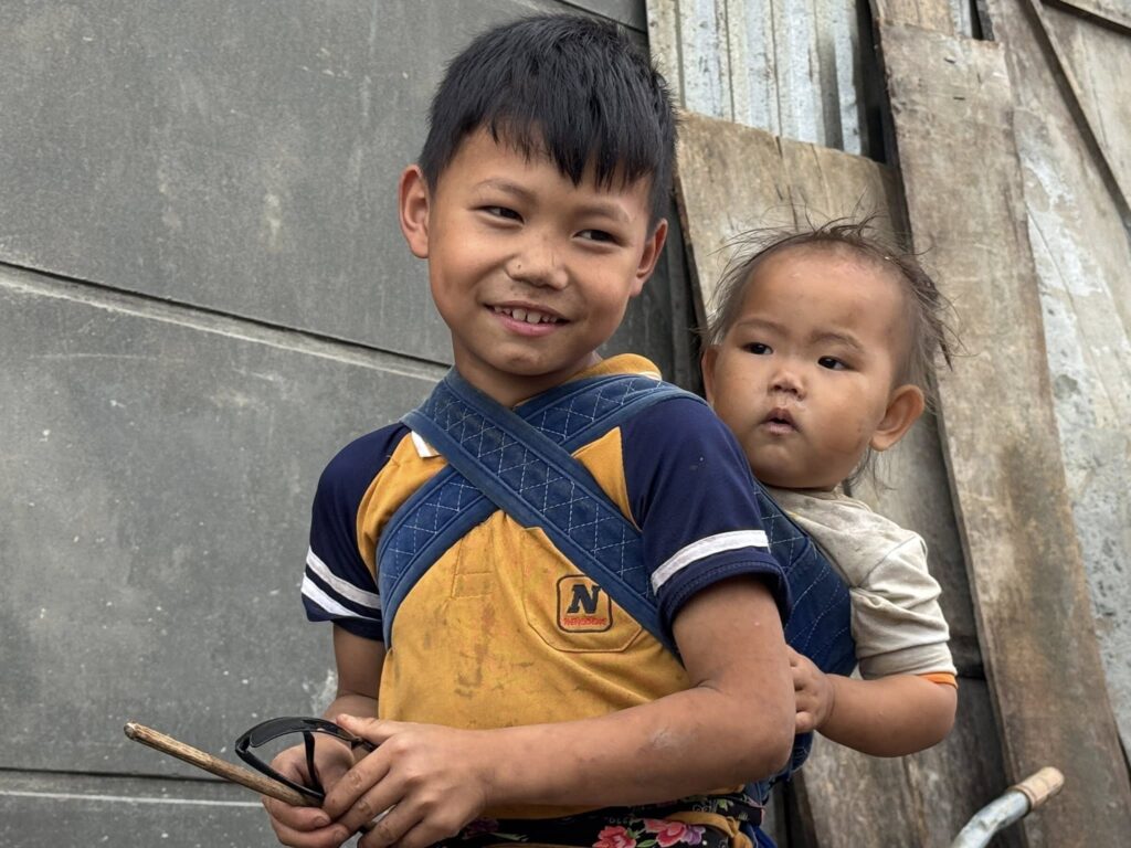 一つの村ではシャイな子たちが高いところからこちらを見ていて、最後にさよなら言いにおりてきて来れました。大きいお姉ちゃんがリーダーなのか、女子グループの後ろから男の子たちがついてきていました。赤ちゃんを背負ったエライお兄ちゃんいました。