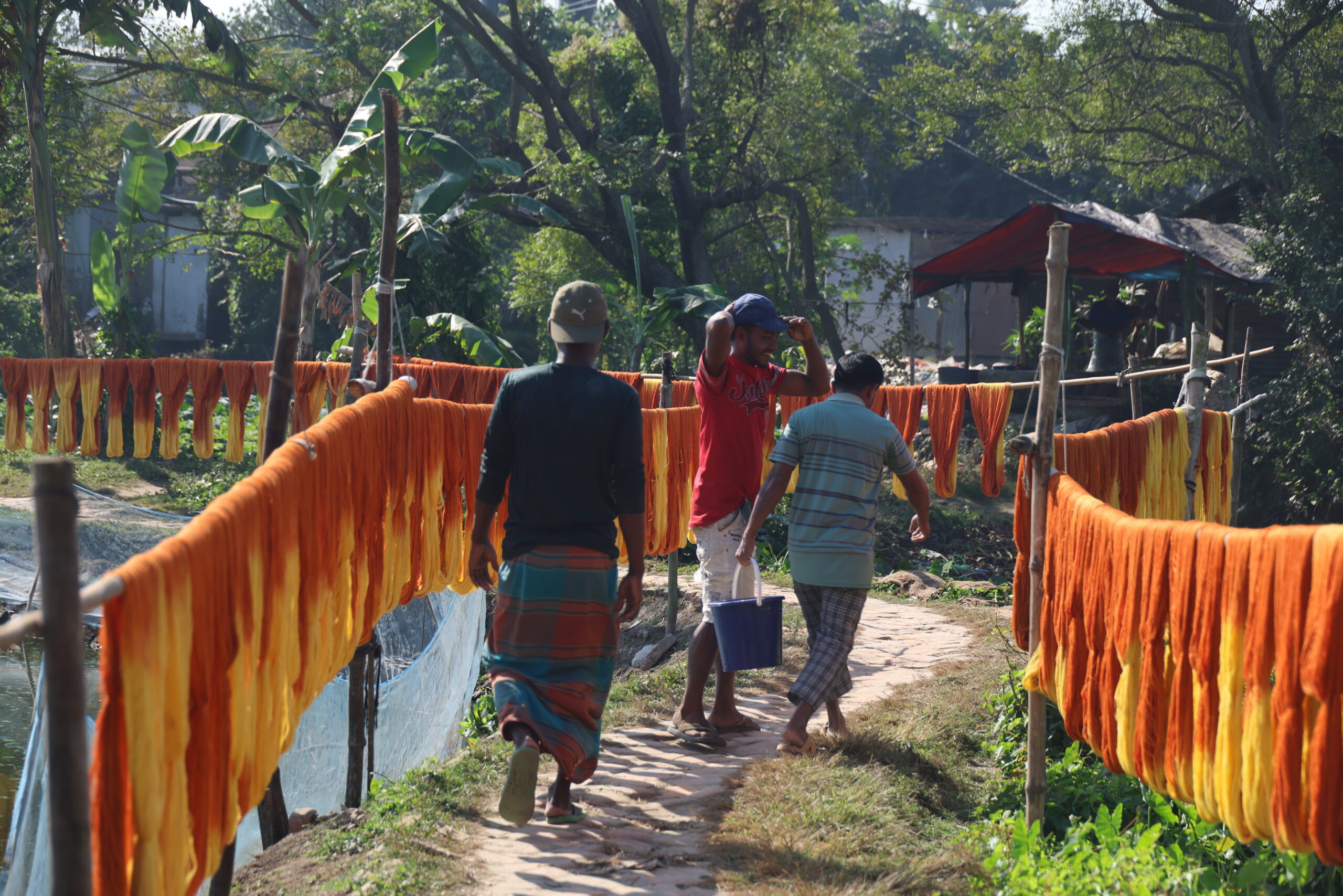 バングラデシュの染色産業は世界第2位を誇るアパレル輸出を支える基幹部門である一方、伝統的な技法と現代の環境課題が共存する分野です。商業的な大規模工場以外にも、地域に根ざした伝統技法が継承されています。