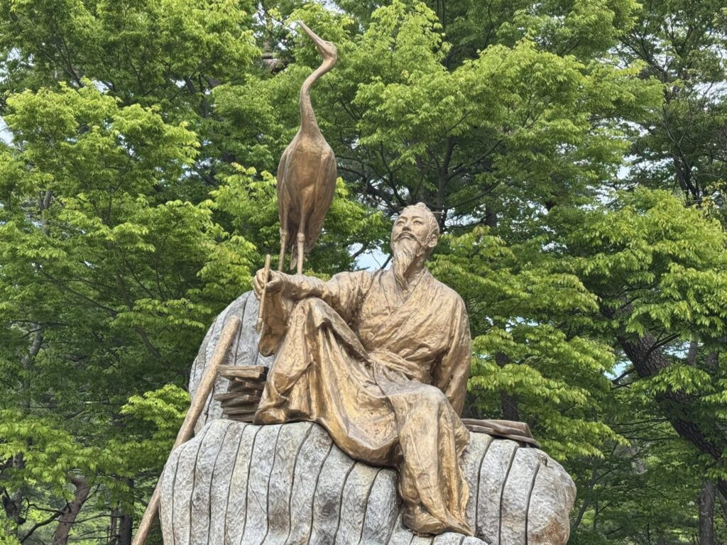 新羅時代の思想家・儒学者崔致遠の像です。12歳で才を認められて唐に留学、17歳で科挙に合格して承務郎侍御史内供奉となりました。28歳で帰国して新羅の国政に携わり、唐の制度移入に苦闘するも敗れて、893年には遣唐使に任命されても行かずに放浪生活を送りました。そして、ここに隠遁して、彼が亡くなった年を知る者は誰もいません。