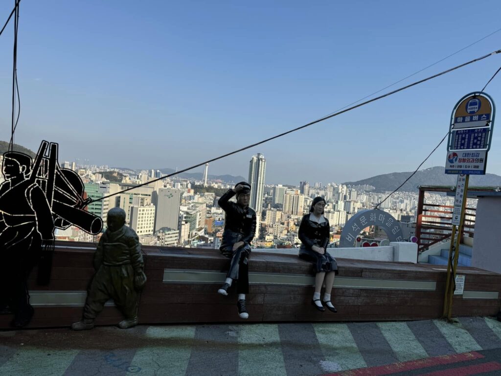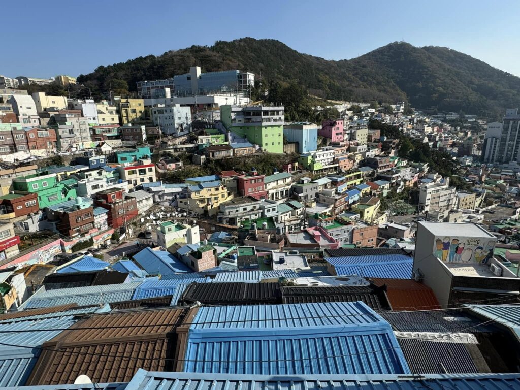 午後は、チャガルチ(札嘎其)市場の港から見えたカラフルな家が斜面にびっしりと連なる風景がある甘川洞へ。