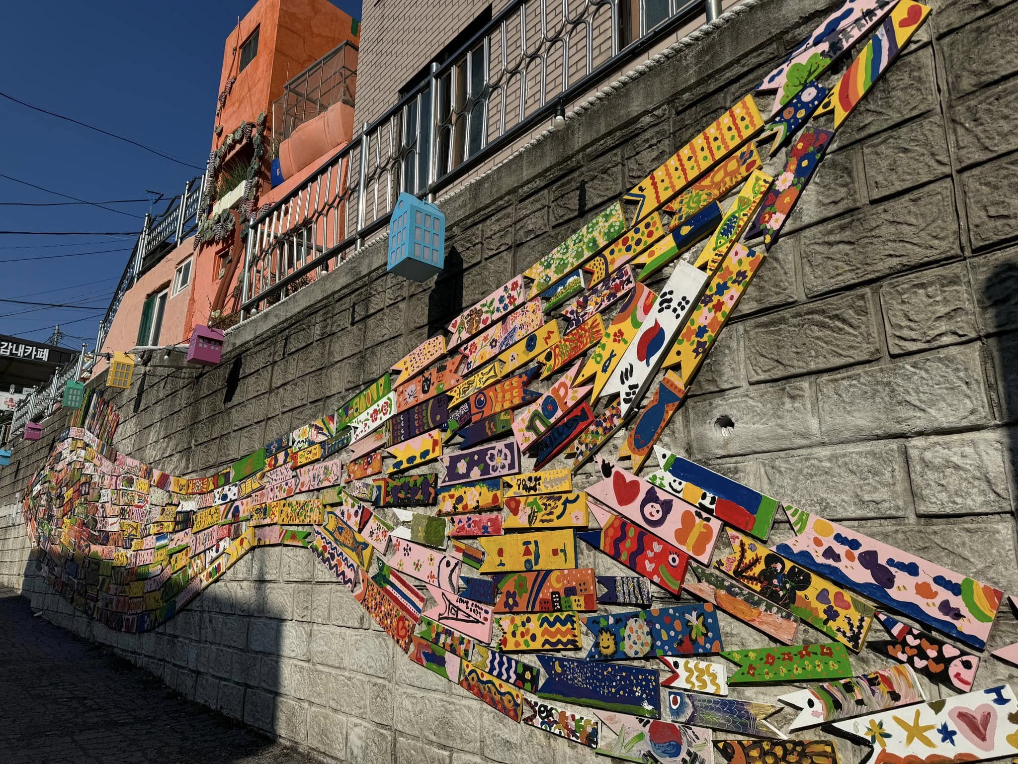 ソウルの梨花洞の路上美術館同様、壁画が描かれ、家々がカラフルに塗られてイメージを一新しています。