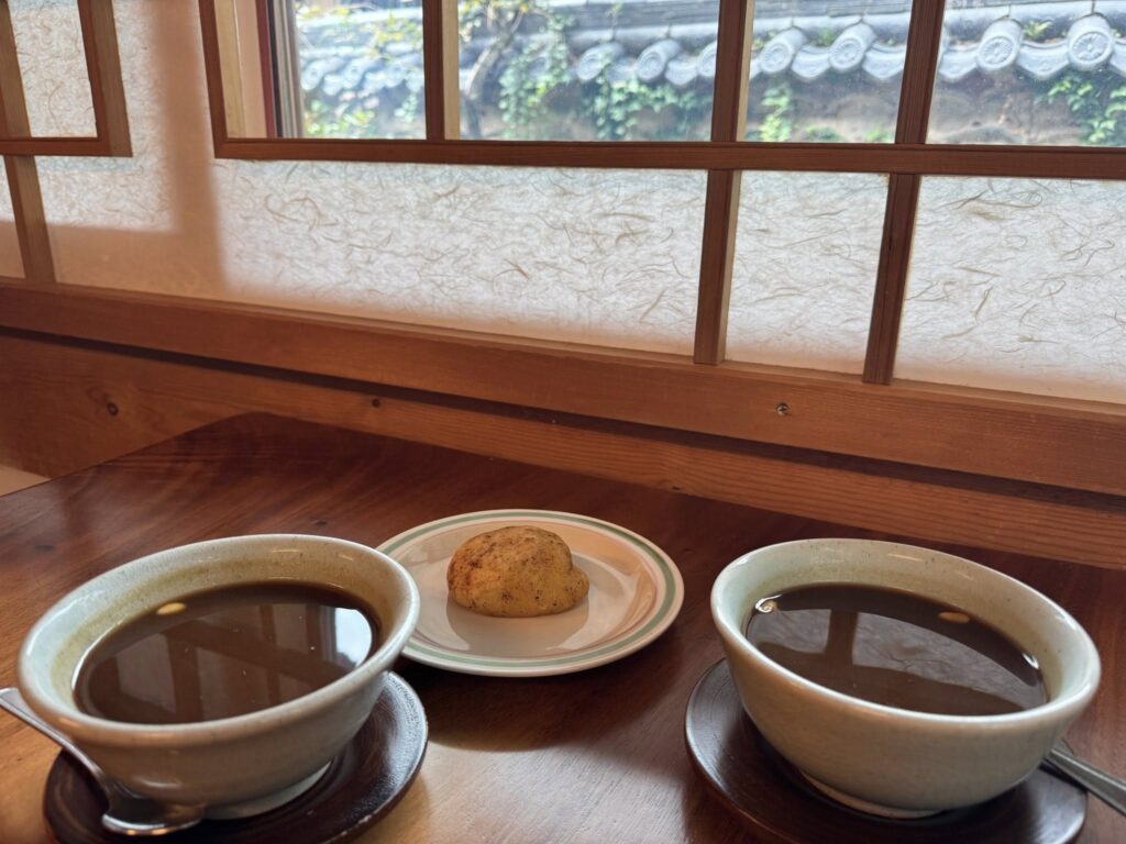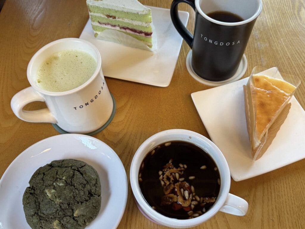 歩いた後には、境内にあるカフェにて緑茶クッキーやらピスタチオケーキやら。そしてまた、別の茶店でテチュ茶とガムジャパン😋