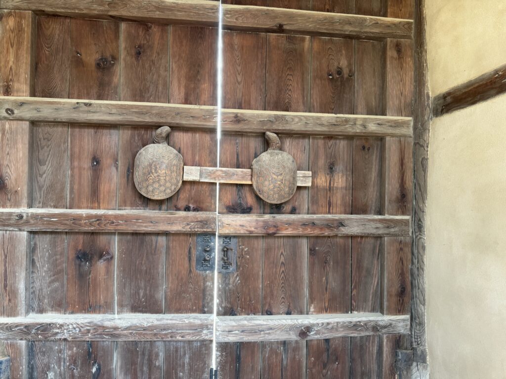 廣居堂は学問・教養を積むための修学場所、壽峰精舍は応接室として使われました。しっかり門を守る、防火という意味をこめて門は亀が守っています。