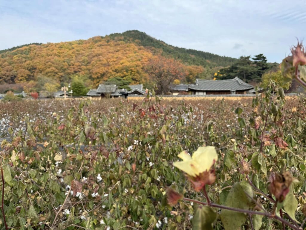 1331年に生まれ、1360年に鄭夢周とともに科挙に合格した文益漸は、帰国時に綿の種を筆の中に隠して国に伝えたことで知られます。現在南平文氏本貫の村(大邱前市長や文前大統領も子孫)にて子孫が暮らしているのは9棟、人が住んでいない2棟は開放されています。