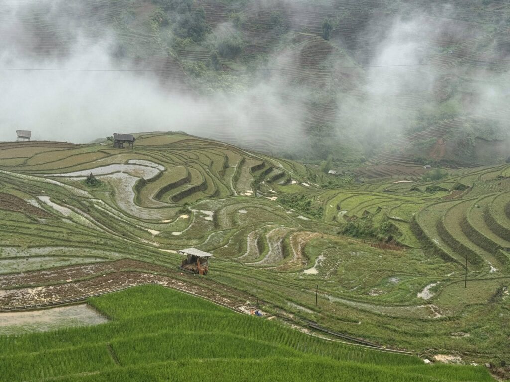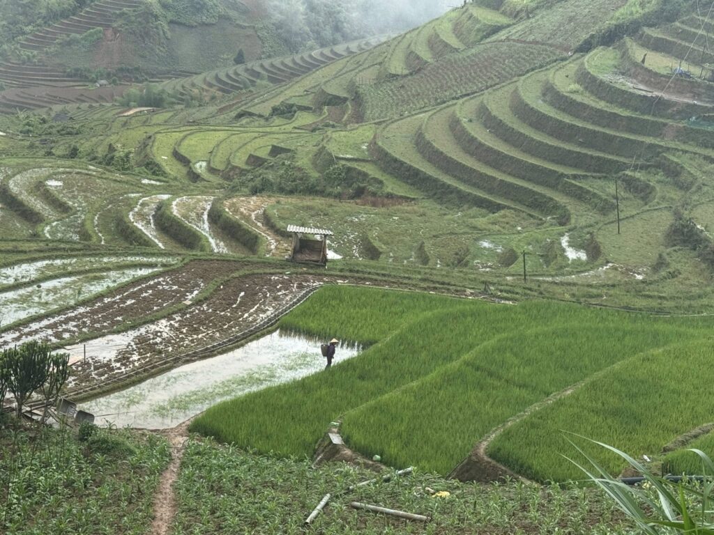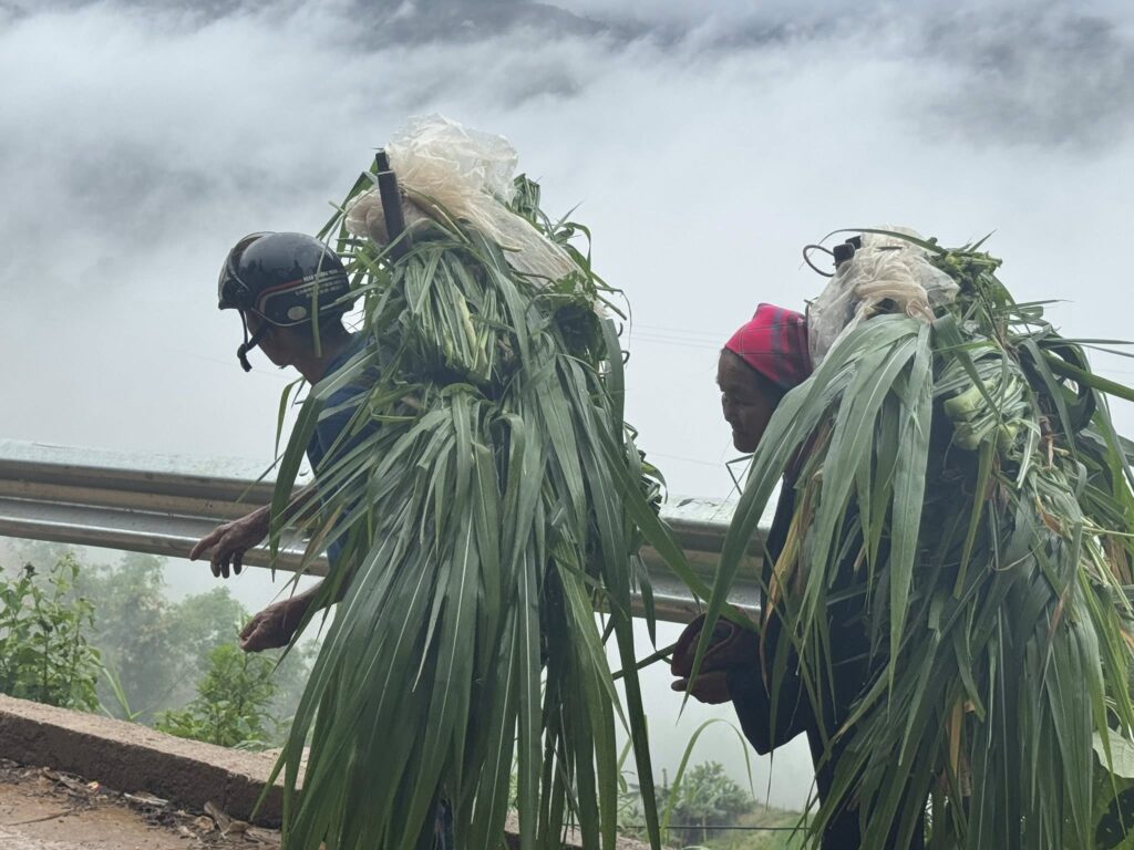 棚田から上がってきた草を背負う夫婦が荷を下ろしてまた霧の中に帰って行くのを眺めて過ごす朝散歩なのでした。