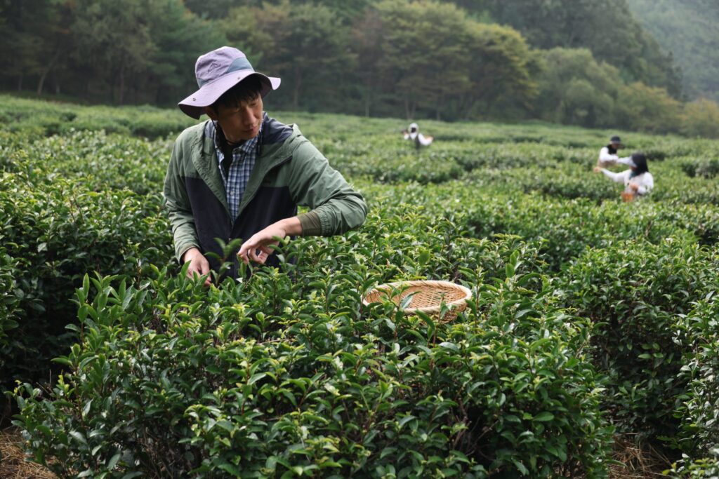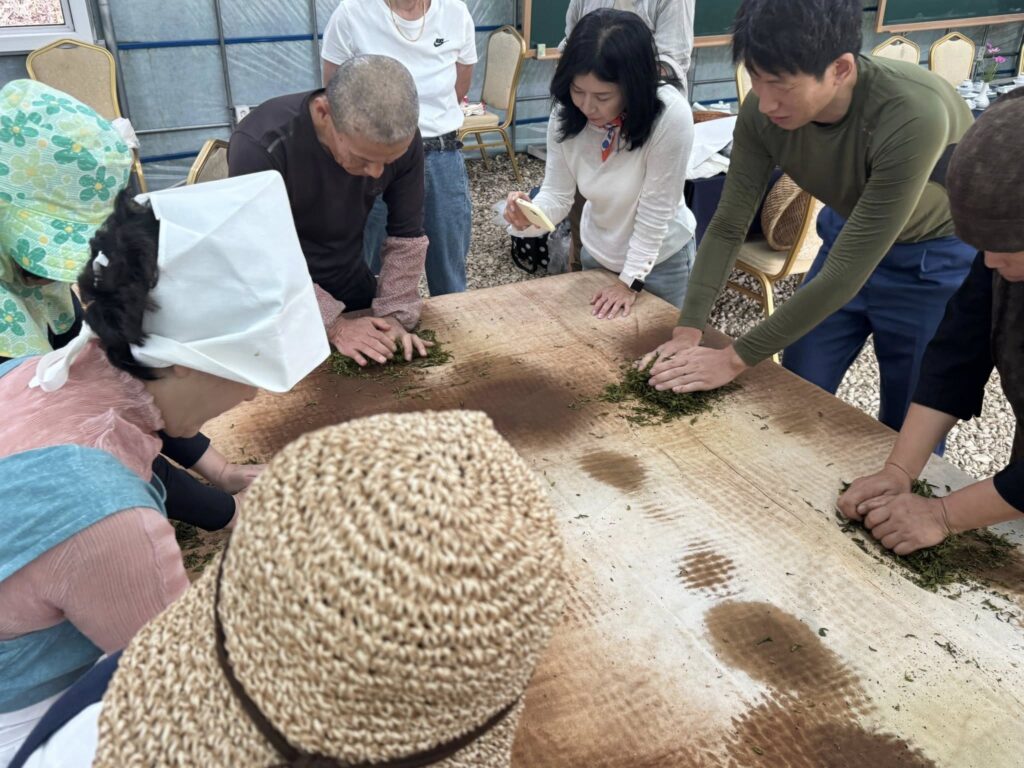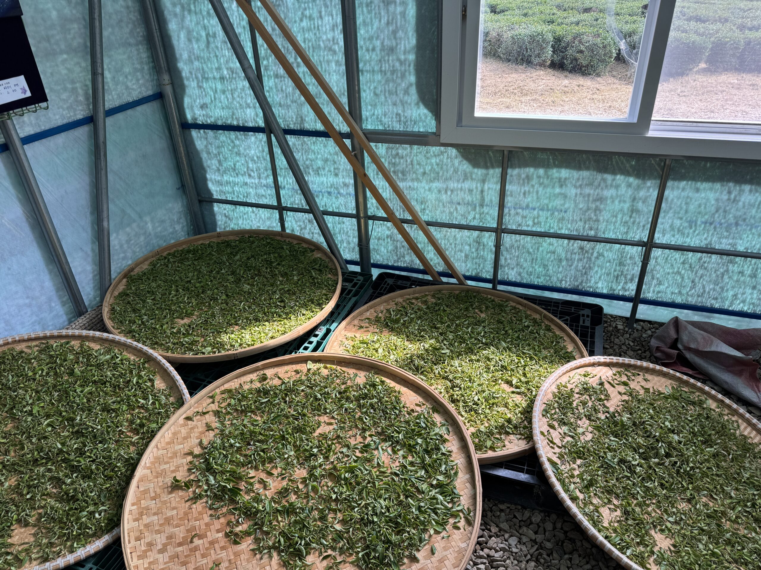 大人数で摘んだ韓国チームに茶葉をたくさん分けていただき、紅茶の萎凋を進めながら、リクエストにお応えして釜炒りを披露しました。