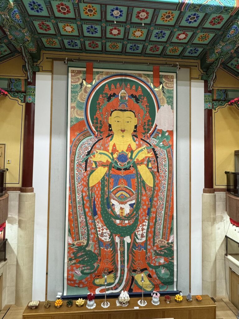 韓国一広い領域を誇る通度寺は、善徳女王時代に、慈蔵律師が創建し、今まで一度も法灯が消えたことがないと伝えられます。大雄殿後方、金剛戒壇仏舎利塔に慈蔵律師が唐から持ち帰った釈迦の頂骨舎利が奉安されているため、大雄殿に仏像を置かずガラスから見える仏舎利にお参りします。