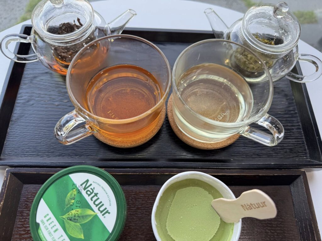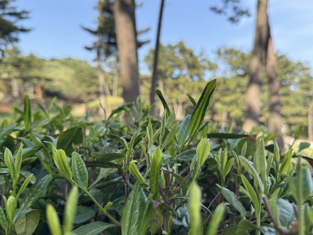 伽耶にお嫁入りする時に茶の木をもたらしたという伝説ヒロインの墓陵らしく、ここを訪ねる人々を茶樹が迎えてくれます。晩秋に出かけた金海茶樹の道。花の季節も終盤だったし、木々も寒さに耐える風情でした。また行きたいという感慨がわくほどの絶景を構成するものではなく、知る人ぞ知る、ここを散歩する人たちの心をいやすような慎ましやかな存在だったのに、ピカピカ光る新芽が呼んだのでしょうか、たった半年後に再訪することになるとは^^ あの時会ったのは冬を忍ぶ姿、春の姿を見て!と言っているかのようです。 金海博物館のカフェにて、金海産緑茶と発酵茶で金海喫茶時間^^