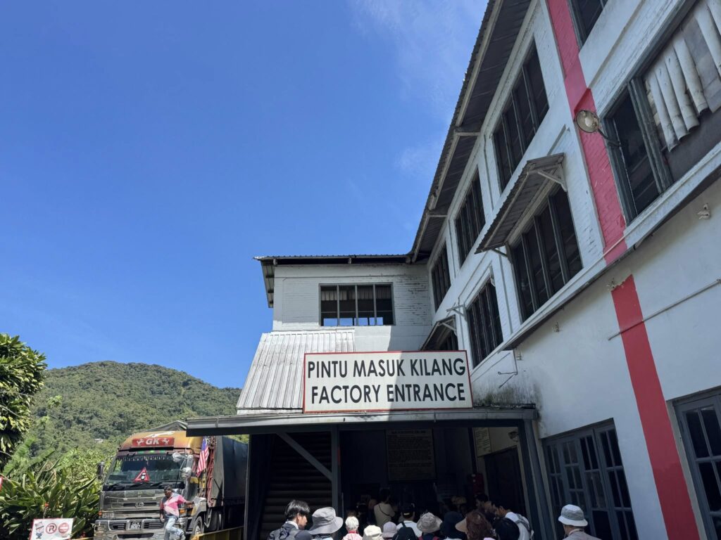 工場見学は1日に10数回時間が決められていて、時間になるとスタッフの説明が入り口で行われて、見学者はぞろぞろ一方通行の順路見学して出口に出てくるスタイルです。工場内は撮影不可ですが、外観を見ていたら、グリーンの茶葉が入った袋がコトコト2階の窓に入って行くのを見ることができました^_^