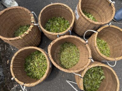 一般的に武夷岩茶は、春茶は穀雨(4月20日前後)から小満(5月21日前後)前、夏茶は夏至(6月21日前後)前、秋茶は立秋(8月8日前後)後、完全に開いた一芽二葉から一芽三葉を摘みます。