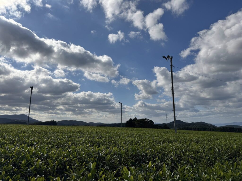 長崎街道の宿場として人々が行きかった嬉野温泉を離れ、長崎の茶産地彼杵との県境に広がる嬉野茶畑のある場所に立つと、大村湾が遠く見えました^_^