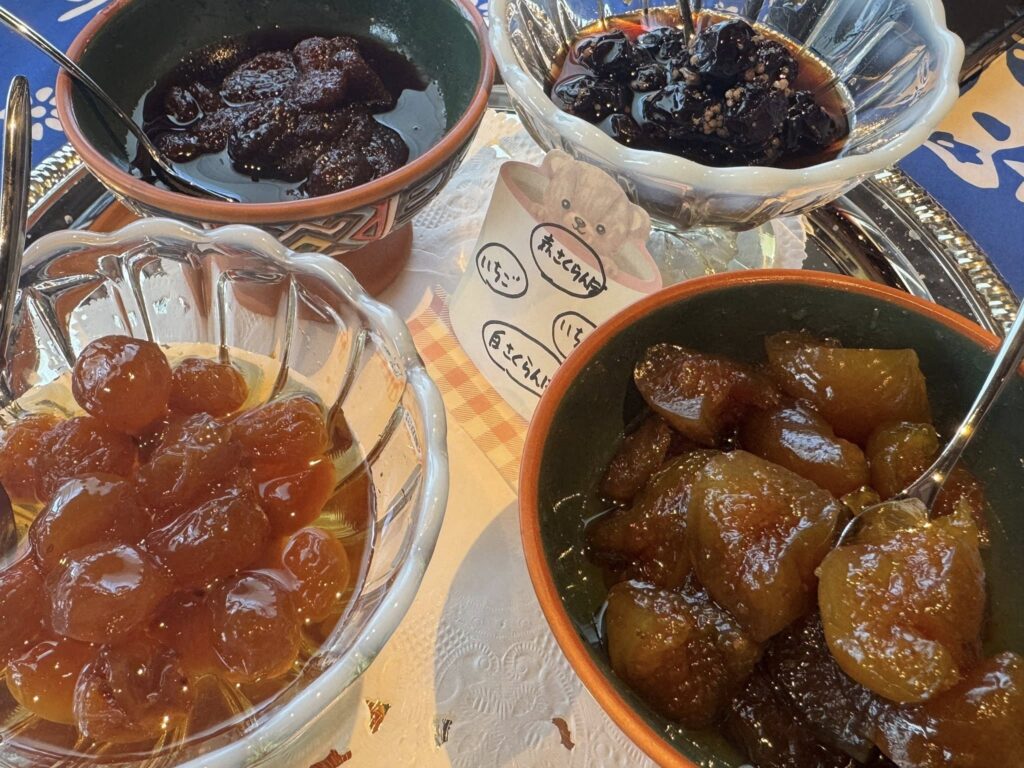 ジョージアンティー4種類(紅茶・緑茶・番茶・ワイルドブルーベリーティー)をいただきながら、
