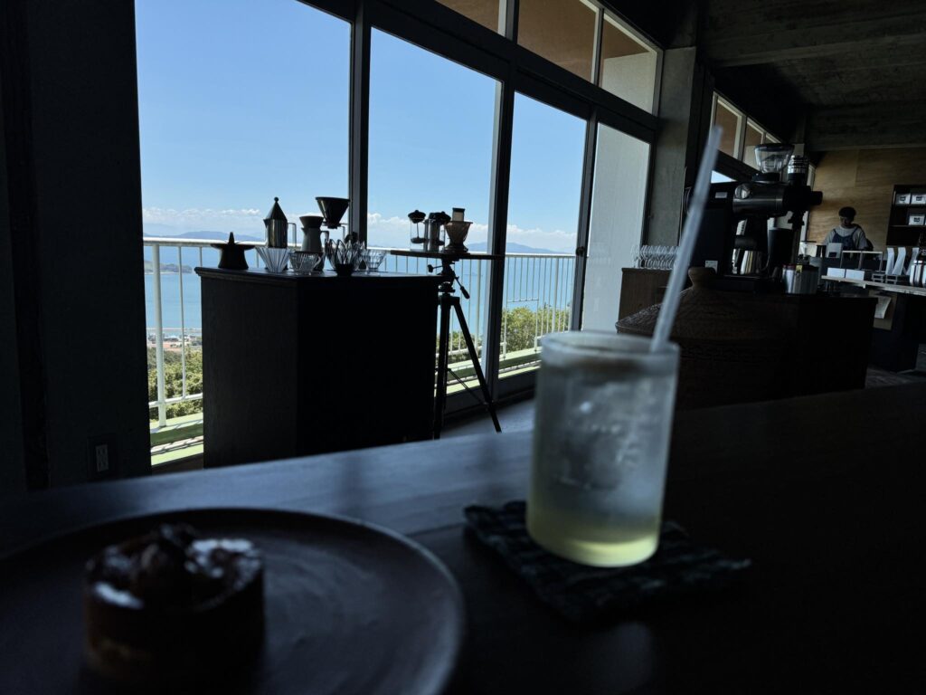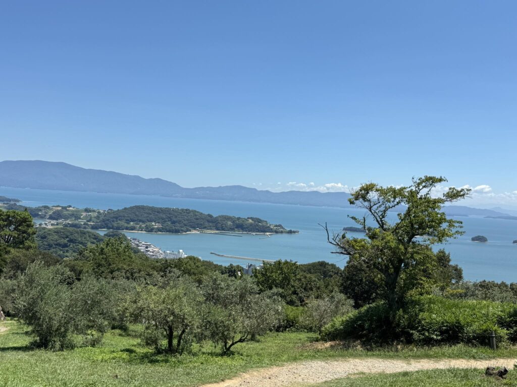 町歩き後は、牛窓の海が一望できるオリーブ園にて喫茶時間。