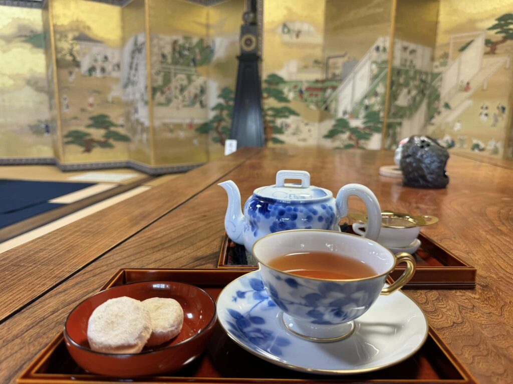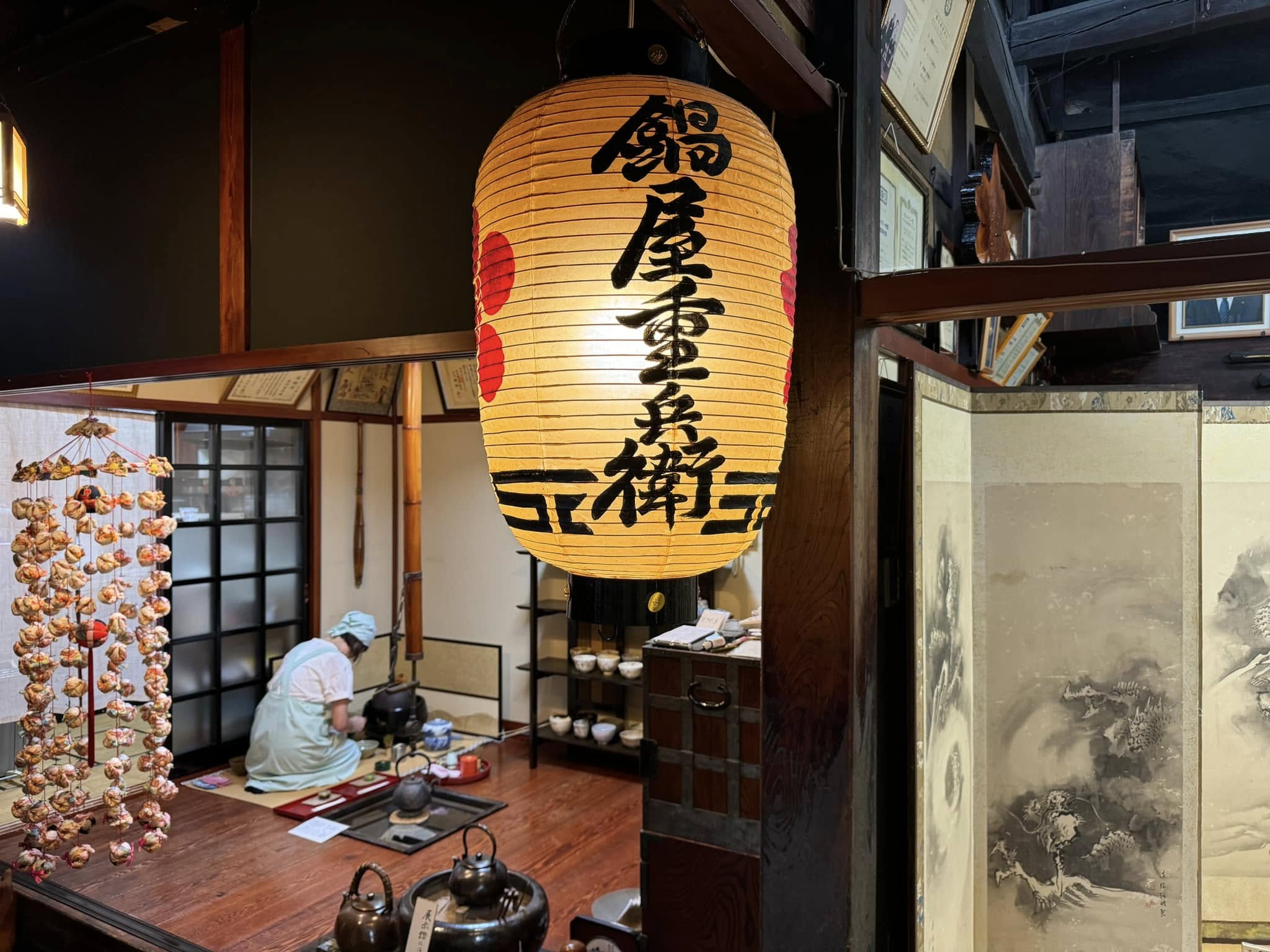 村上茶創成期の老茶舗九重園、建物には270年の歴史の重みがあります。座敷カフェがあるので、朝の一杯のお茶はいつもここから。