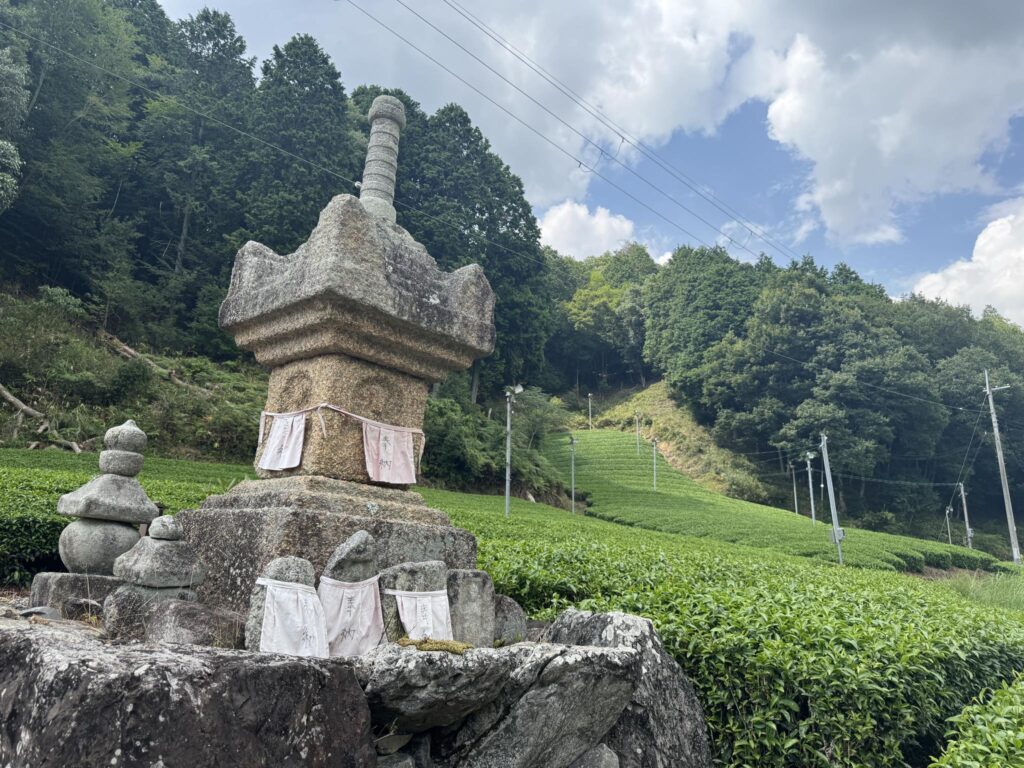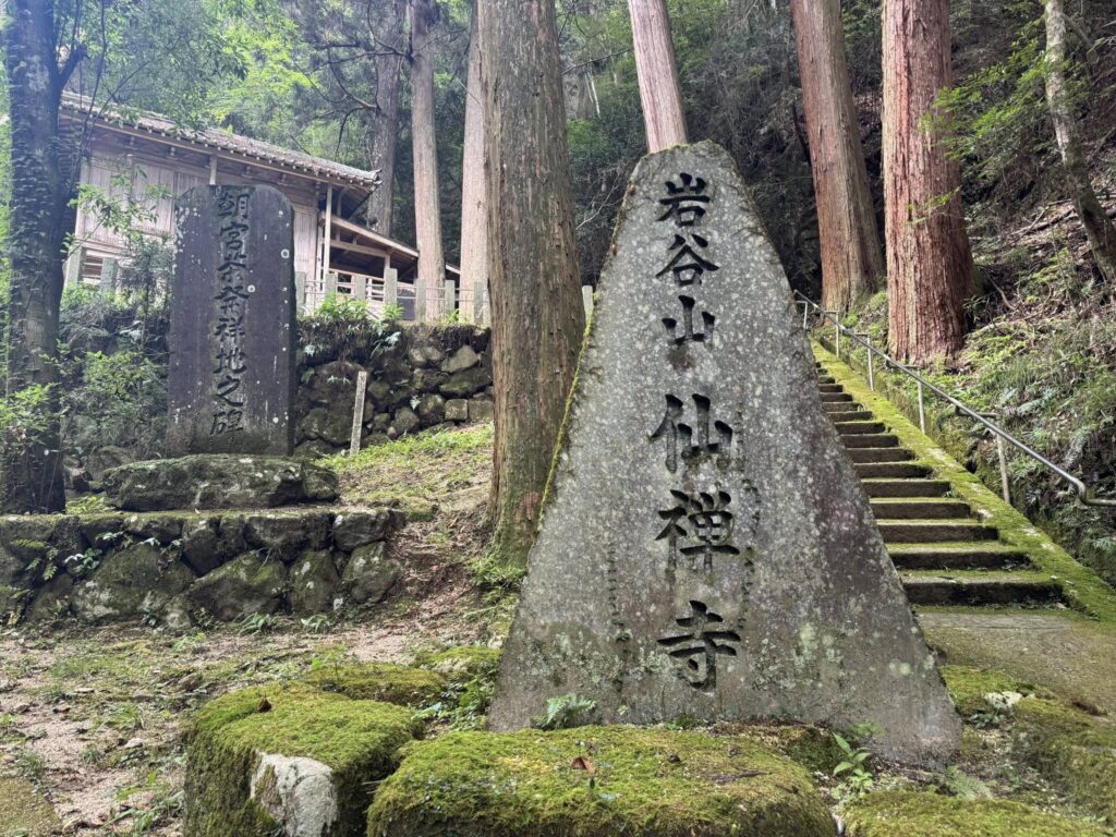 比叡山延暦寺の開祖 最澄は、唐から種を持ち帰って比叡山麓と朝宮の地で茶栽培をしたと言います。 比叡山麓日吉神社には最古茶園がありますが、こちら朝宮は、天台宗のお膝元で参詣者の多い比叡山麓と違い、信楽しがらき高原鐵道 信楽駅から西へ国道307号 近江グリーンロードを8kmほど進むと甲賀こうか市信楽町上朝宮の市街地、そこから滋賀県道522号 田代上朝宮線を1kmほど北上すると、崖上に小さなお堂が現れる。この岩谷山仙禅寺前に朝宮茶発祥地の碑が立てられています。岩谷観音とも呼ばれ、磨崖仏が安置されているというが、風化が激しく、なんとなくそうかなあという程度にしか見えなくなってきているという。