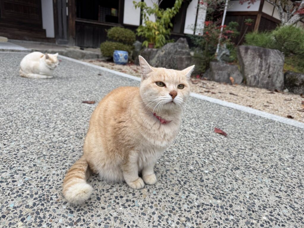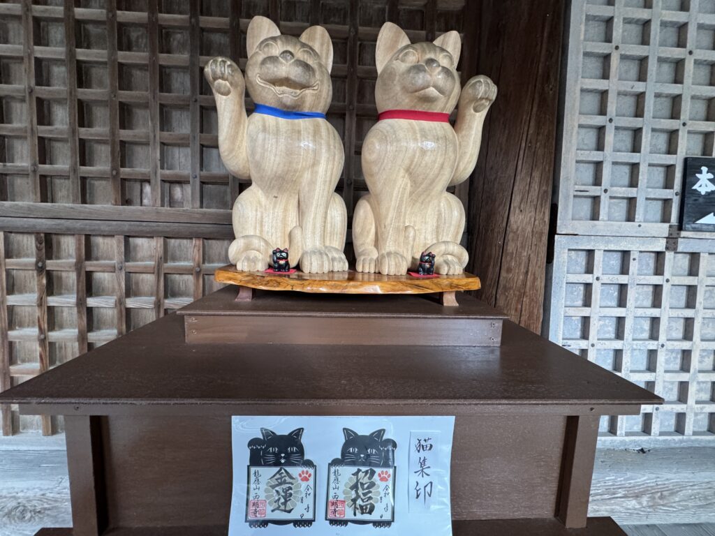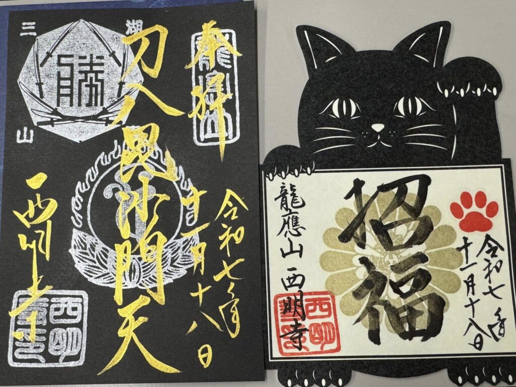 百済寺の姉妹猫が寄って来て肩に攀じ登ってくるほど懐いてきたので猫にご縁有りかと思いきや、西明寺に招福猫の御朱印がありました🐈⬛