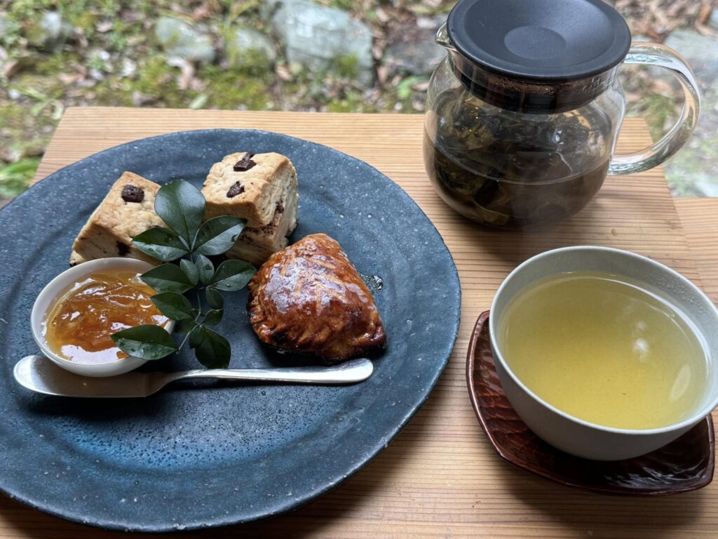 春夏秋、違う棚田の風景と茶樹たち、大きな古茶樹、また見たい風景が増えました^^ ランチは再びポールスターへ。チョコスコーンwith上勝特産ゆこうジャム、土日限定アップルパイをホット阿波晩茶とともに。 勝浦町の徳島駅行きバス停近くの自販機でペットボトル「阿波のこだわり晩茶」発見^^