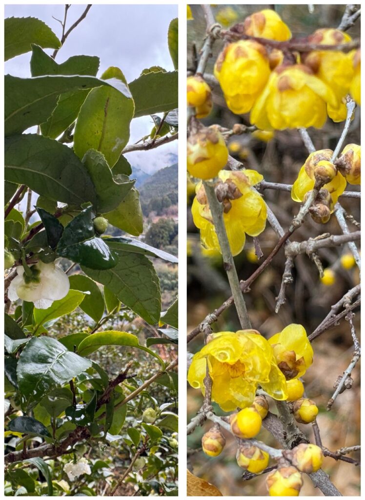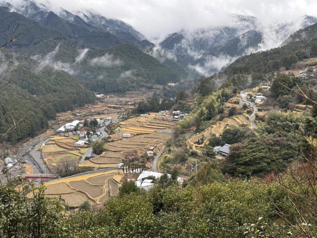 前夜の雪模様も、快復した今朝、神田集落の棚田を見下ろす松下ファームの景観最高な斜面で茶摘みが叶いました🙏