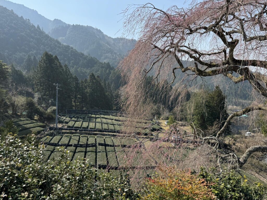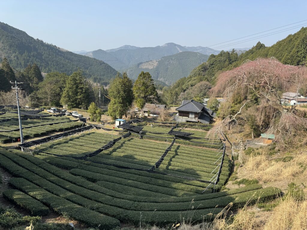 下方では、茶畑の手入れをする方たちが動き回っていました。