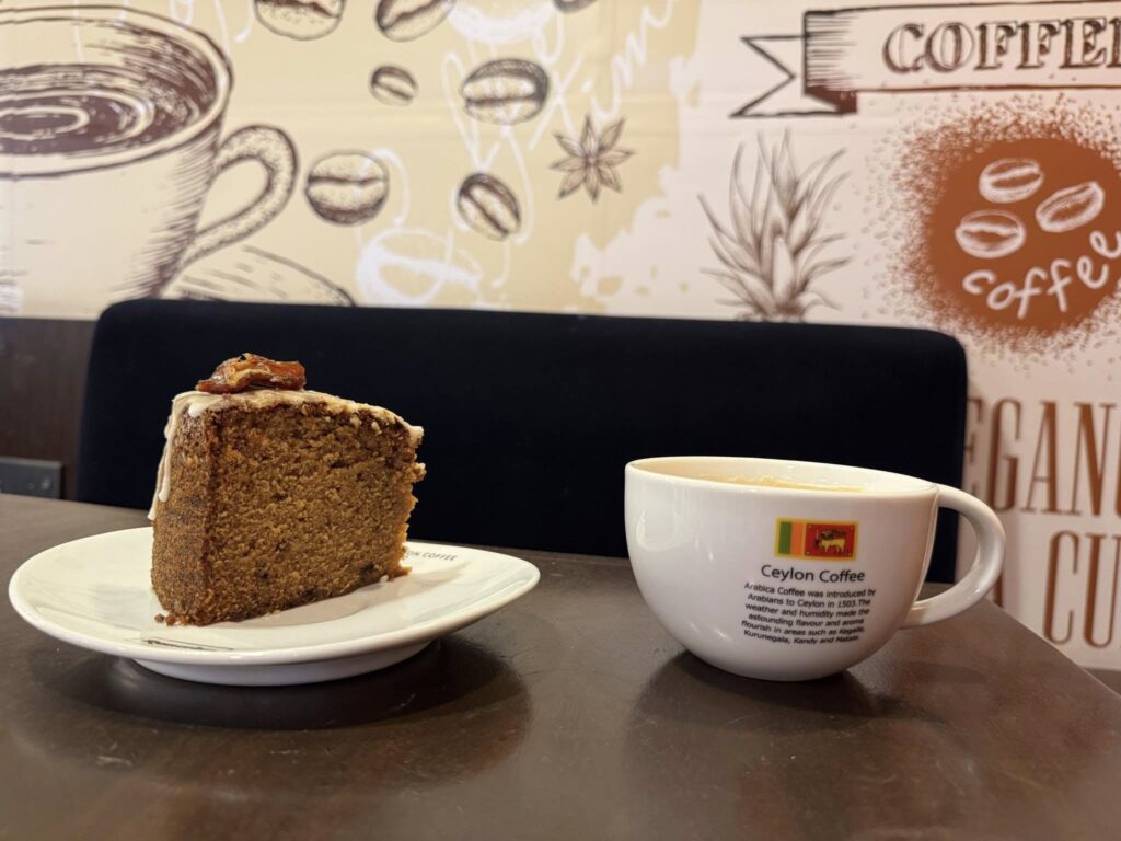 デイツケーキ&カフェラテ、セイロンコーヒーにて。