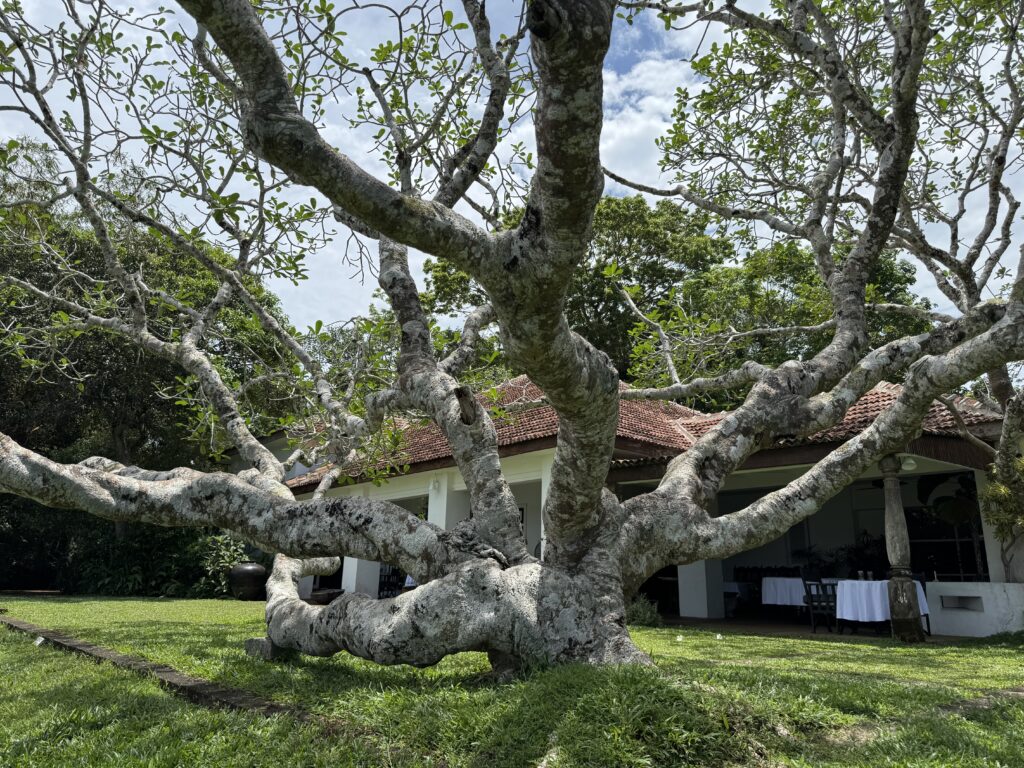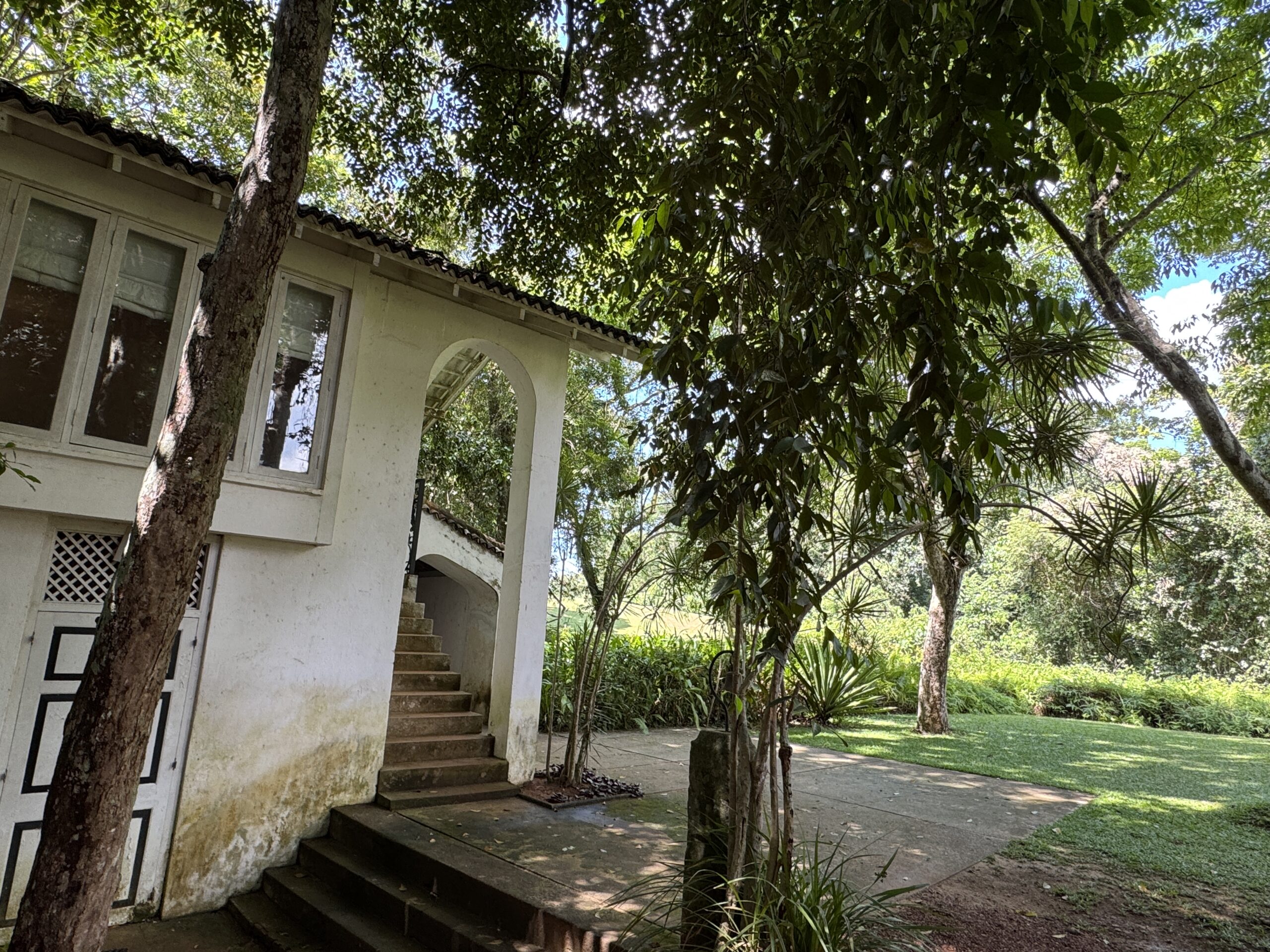 この場所は、オランダ統治時代はシナモン農園、英国統治時代はゴム農園でした。シナモン農園の名残を感じさせるのが、南側の丘シナモンヒルです。シナモンの木が現在も残っています。メインバンガローは1930年代に建てらえたゴム農園主のカントリーハウスです。